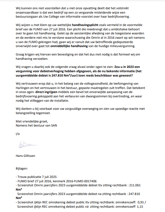 SAN heeft Gedeputeerde Staten van Fryslan op 13 Juli 2025 een brief gestuurd naar aanleiding van de publicatie en openbaringen in Trouw.