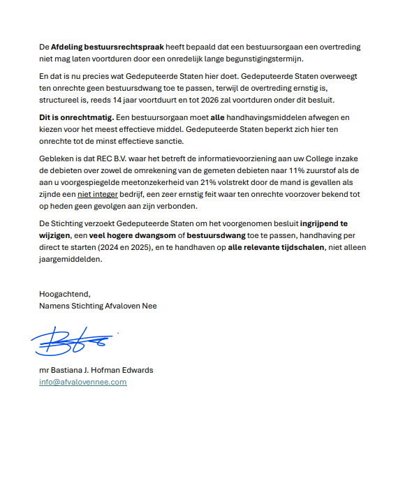 06.02.2026 We hebben op bovenstaande brief nog steeds geen officieel antwoord ontvangen van de Provincie. Het niet nemen van een besluit, is ook een besluit.